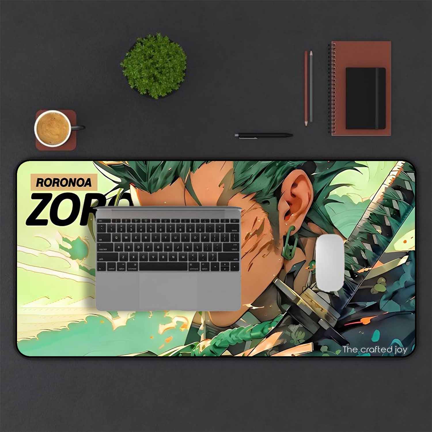 Unleash the spirit of the swordsman with the Roronoa Zoro Deskpad by The Crafted Joy. Inspired by the legendary One Piece anime character, this large mouse pad (600mm x 300mm) gives you plenty of room for smooth, precise mouse control while adding bold anime style to your desk.